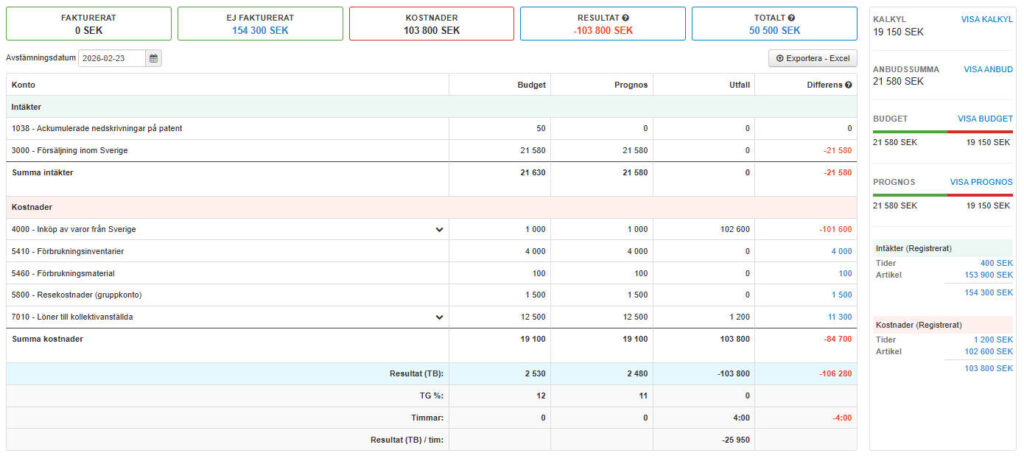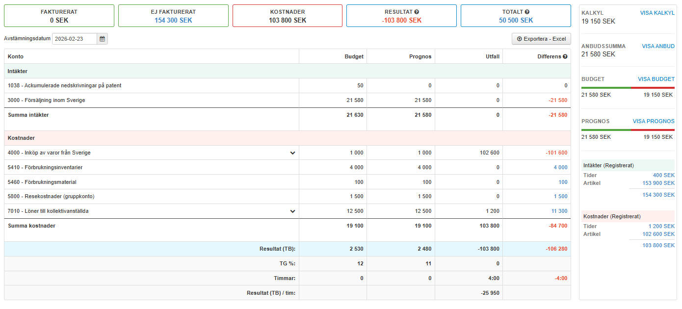 Ekonomi - Kalkyl, anbud, budget, prognos och utfall på kontonivå