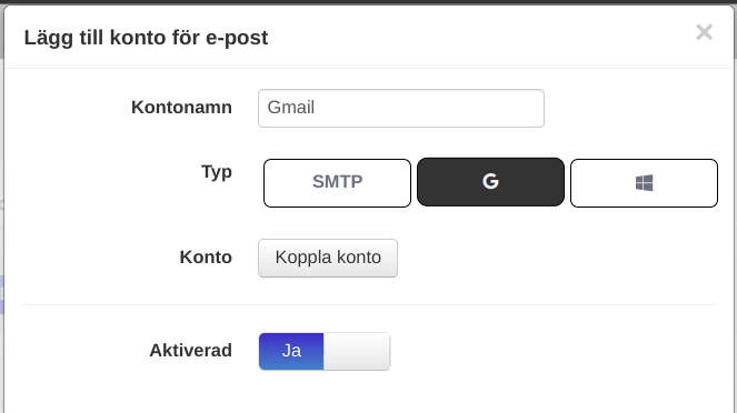 Det har tidigare varit lite bökigt att lägga till så att man kan skicka mail från sin eget E-post konto om man har haft Gmail eller Outlook/MS. Nu är det dock slut på det i och med att vi har stöd för OAuth2 som är Google’s och Microsofts ”autentiseringssätt” . Inställningen görs i ”Inställningar -> Allmänt -> E-post” och där väljer man om man vill skicka via SMTP, Google eller Microsoft.