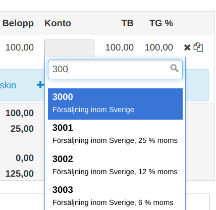 Nu finns möjlighet att lägga till konto på fakturarader. För att kunna göra detta så krävs att ni har minst ett konto i ”Inställningar -> Kontoplan” samt att ”Använd kontering” är valt i ”Inställningar -> Fakturering”.