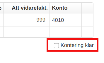 När inställningen är gjord så finns möjligheten att markera ”Kontering klar” under konteringsraderna.
