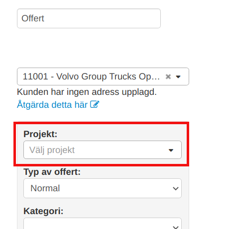 - stöd för att koppla mer än en offert till ett projekt (en offert kan dock endast vara kopplad med ett enda projekt)
