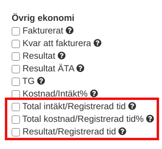 Tre nya kolumner har lagts till i analysen som jämför total intäkt/kostnad med registrerad tid.