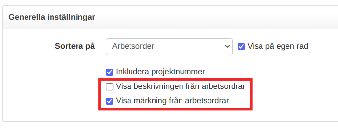 Möjlighet att få med beskrivningen samt märkningen från alla ingående arbetsordrar till fakturan