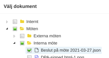 Projekt – kunna välja dokument från ”generella” dokument till projektet